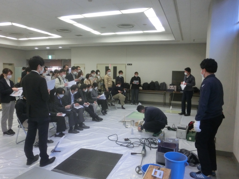 各種工法の施工デモンストレーションも実施し、工法ごとの違い、工程をご説明いたしました。