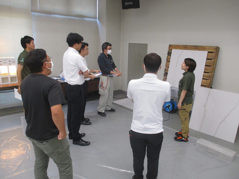 工叔父現場では技能員さんが施工をしていますが、実際に自分で触ると色々な発見があり、「勉強になった!次の現場でこの知識を活かしたい!!」など嬉しいお言葉を頂きました。