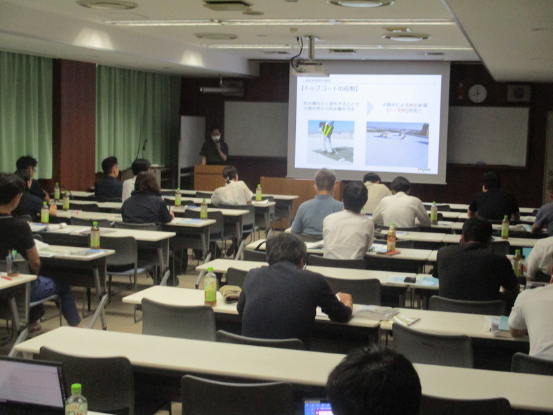 今回は民間マンションなどの改修に関してお問い合わせを多くいただくことから、管理会社さま、設計事務所さま、改修元請けさまを対象としたセミナーを開催しました。(CPDプログラム認定の防水セミナーです)